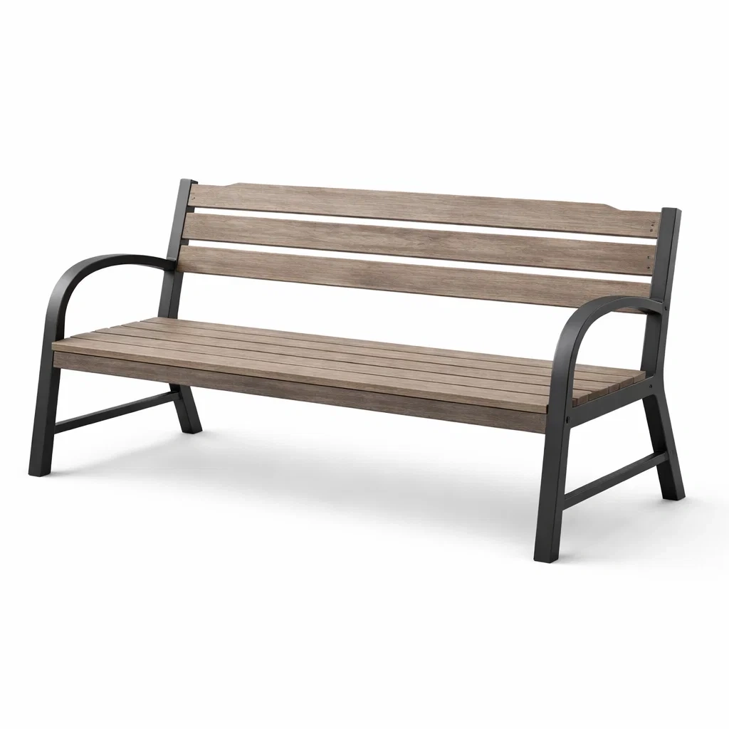 Bank aus akazienholz und metall grau
