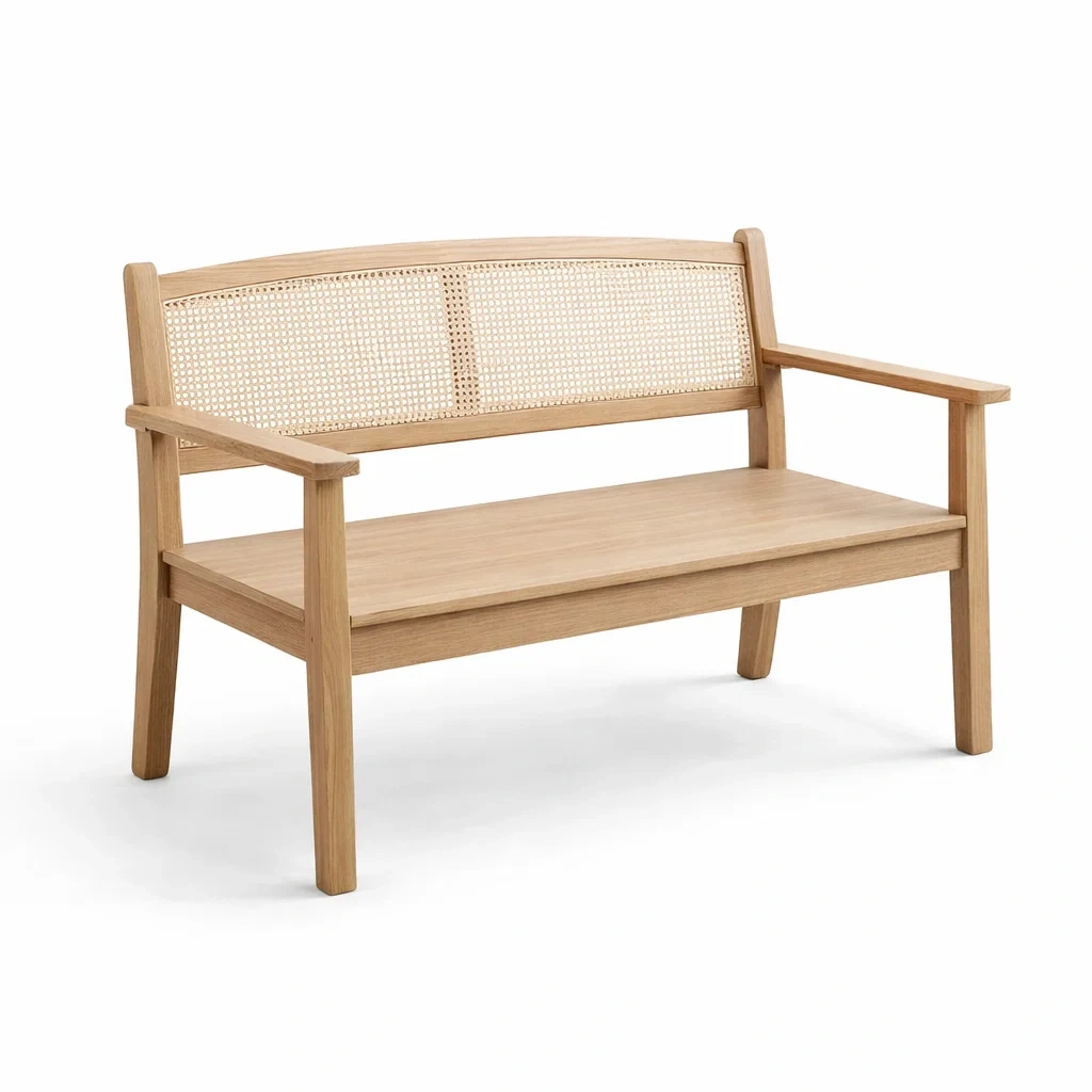 Bank aus holz mit rattangeflecht rückenlehne