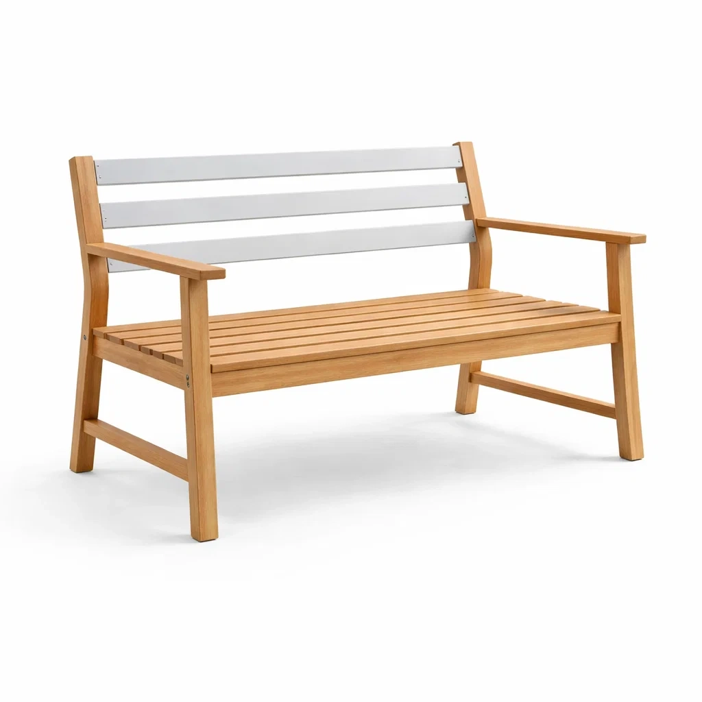 Bank aus eukalyptusholz und metall natur weiß