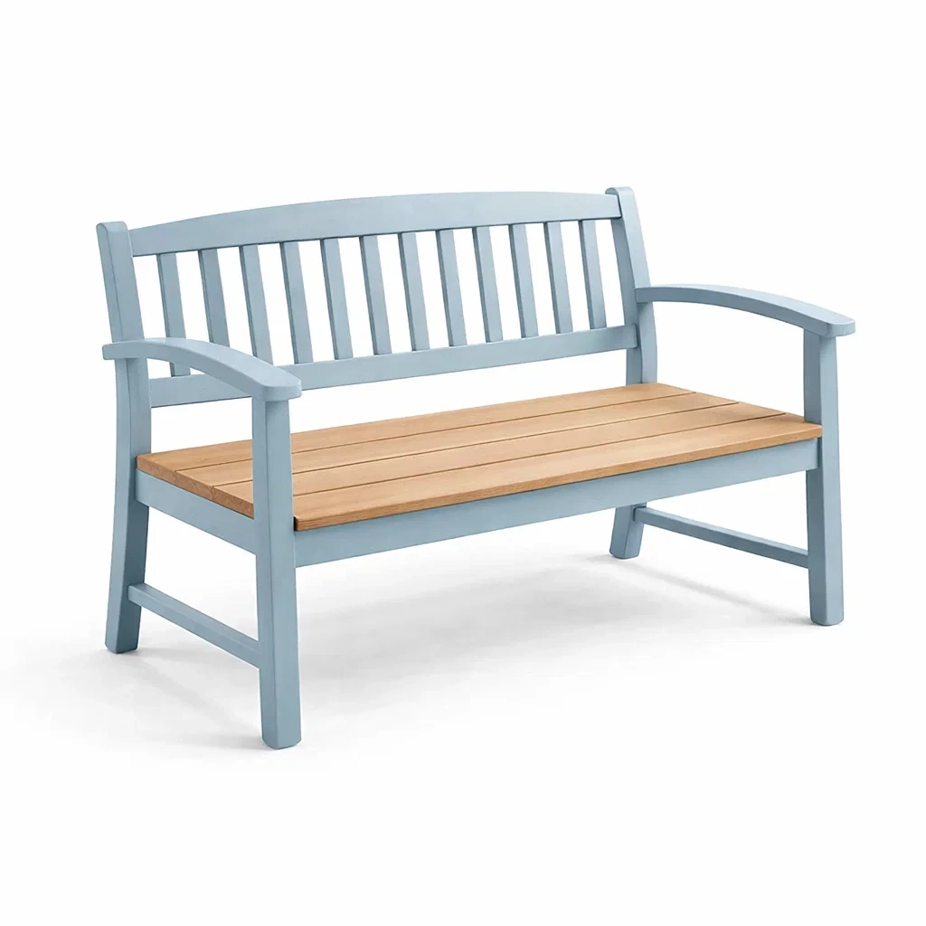 Bank aus hartholz blau mit teakholz sitzfläche