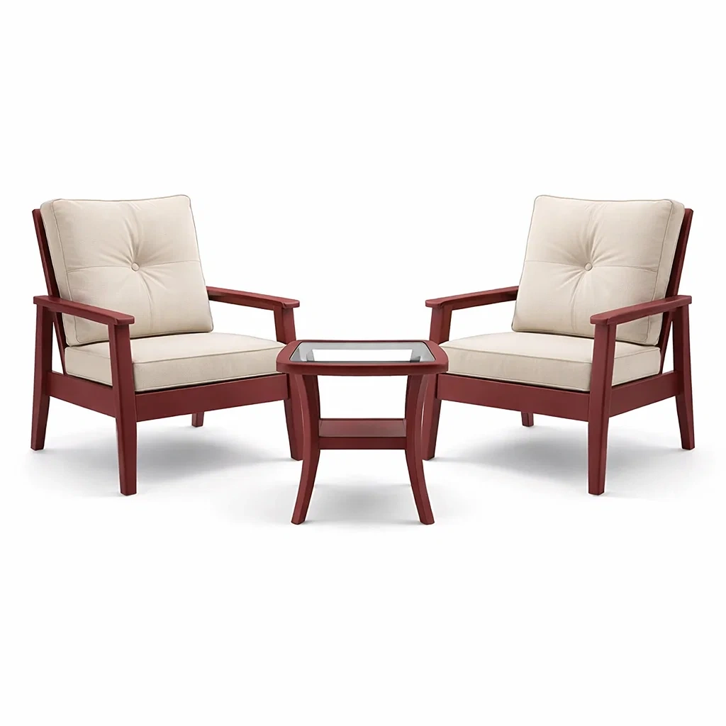Dieses Set enthält zwei Holzstühle und einen Tisch.