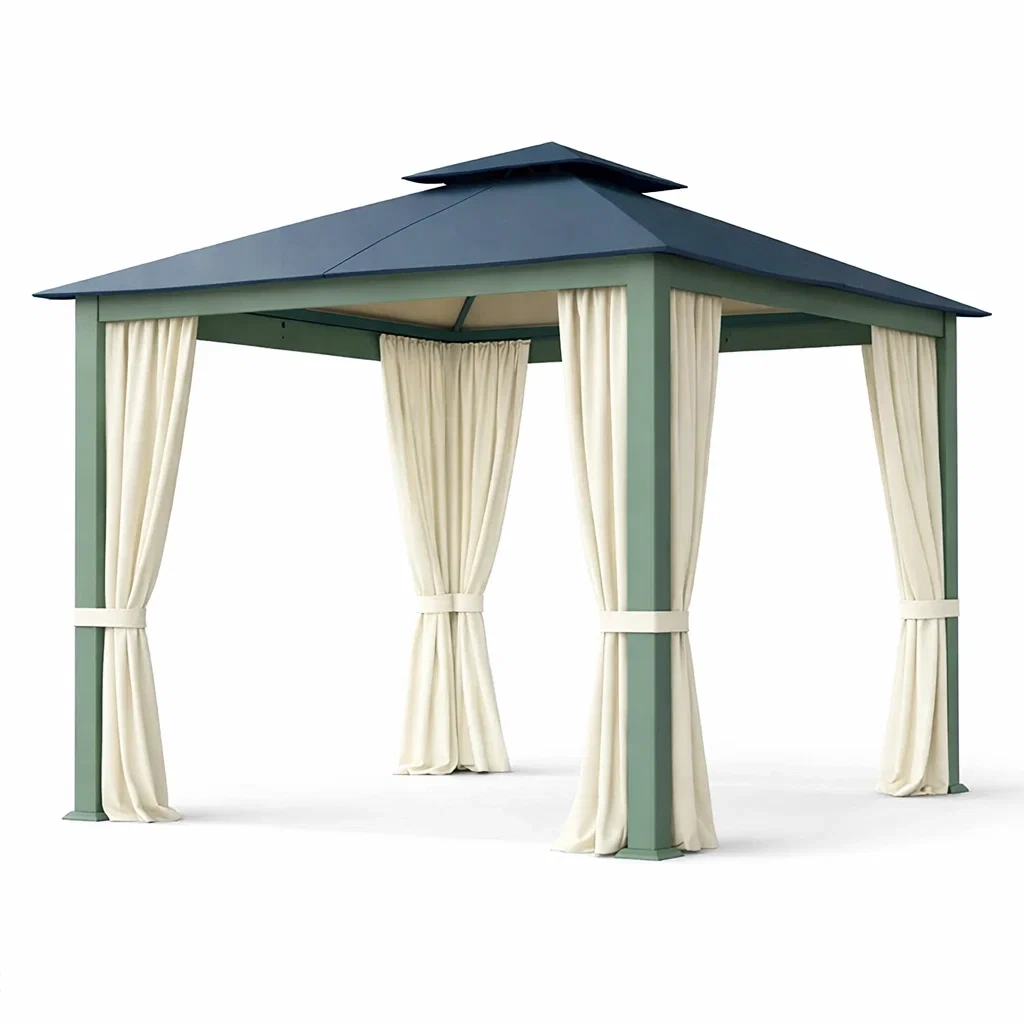 Pavillon stahl polyester grün beige
